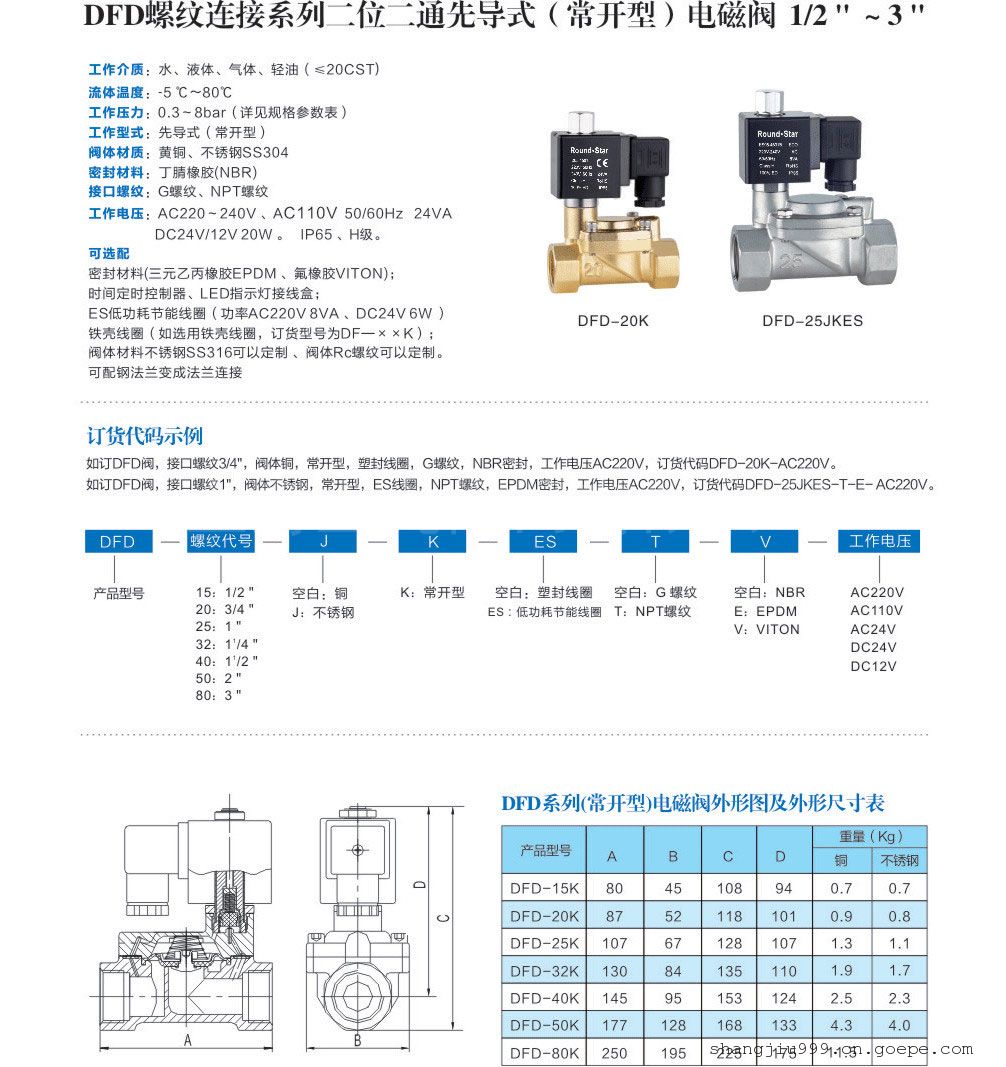 型号:DFD-15J 材质:不锈钢 连接形式:法兰 类型:二通式 公称通径:15 mm 适用介质:水;蒸汽;油品 流动方向:单向 零部件及配件:线圈 用途:截止 标准:国标 压力环境:常压 工作温度:常温 先导活塞电磁阀